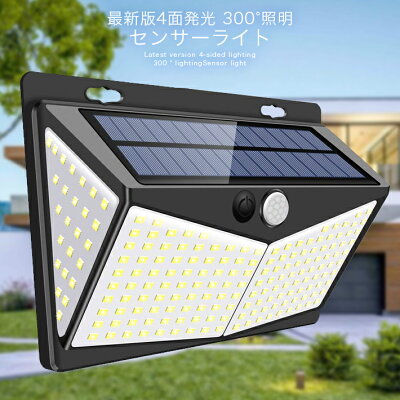 2020進化版 208LED センサーライト ソーラーライト 4面発光 屋外照明 人感センサー 3つの点灯モード 防水 防犯ライト 両面テープ付き 自動点灯 屋外照明 庭 玄関 ガーデンライト 駐車場