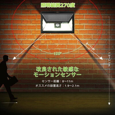 (説明書は付属しておりません) 【3つの知能点灯モード】 (1)常時点灯モード(30%ずっと点灯 (2)DIMセンサモード(DIM→強点灯モード→DIM) (3)強い光センサモード(消灯→強点灯モード→消灯) ニーズに合わせて、便利な切替スイッチを調整するとモードを簡単に選択できます。
