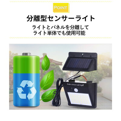 LEDセンサーライト ソーラーライト 屋外 人感センサー 分離型 防水 防犯ライト 外灯 玄関灯 センサーライト LED ソーラーパネル ライト 玄関ライト 消灯 ガーデンライト IP65防水 駐車場 玄関 廊下 軒先 庭 ガーデン 省エネ 送料無料